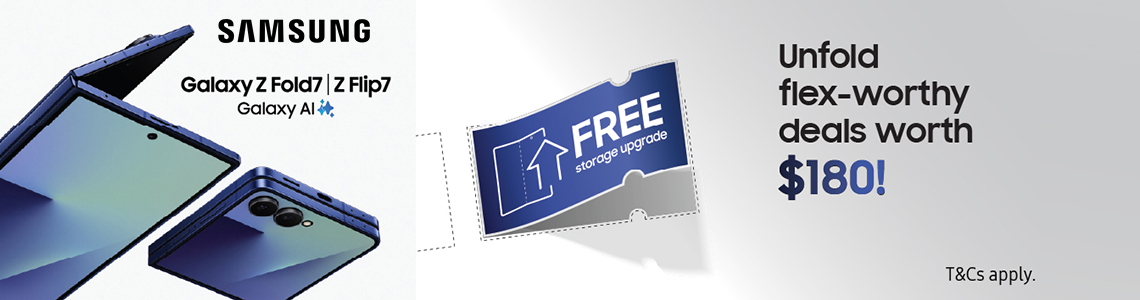 • Secure your spot for Samsung Galaxy Z Fold7 & Z Flip7 and enjoy an instant S$1175 Off with Trade-in.